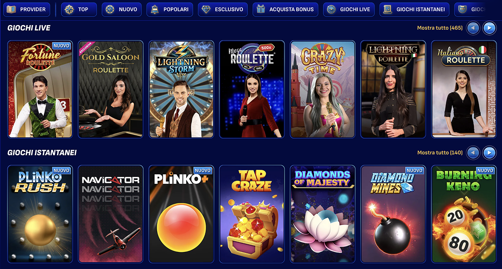- Oltre 4000 giochi disponibili, dalle slot ai giochi live più innovativi