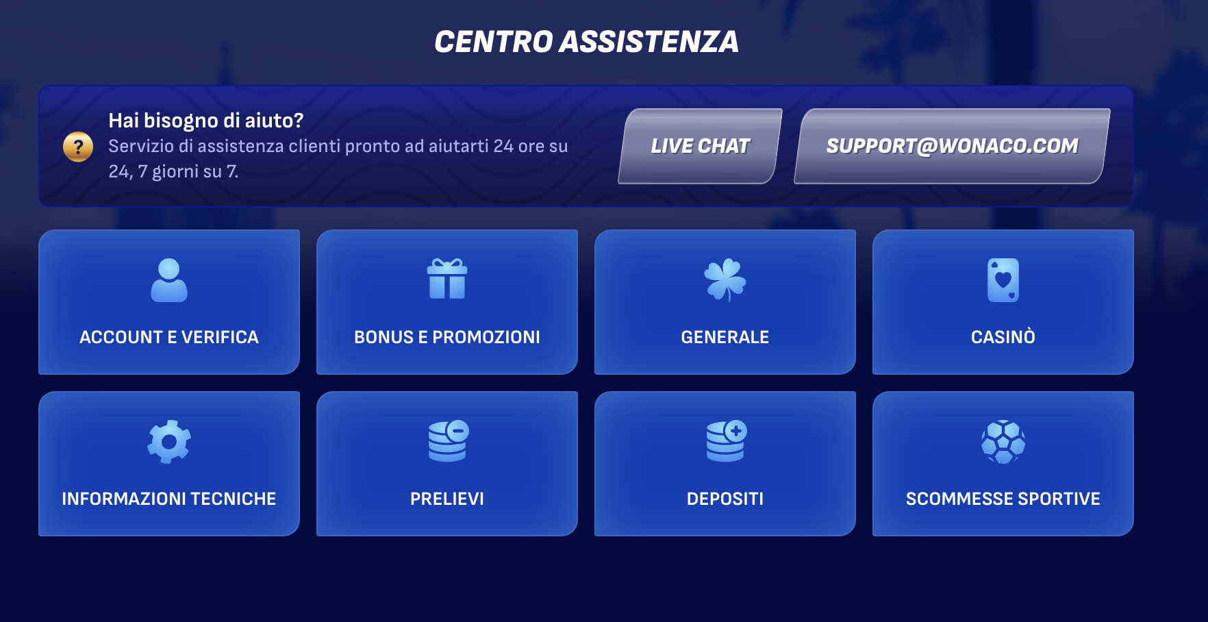 FAQ – Domande Frequenti su Wonaco Casino